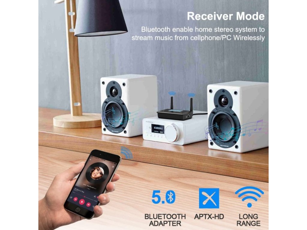 Premeňte svoje staršie stereo zariadenia na moderné systémy kompatibilné s Bluetooth technológiou. Vďaka tomuto režimu môžete bezdrôtovo streamovať hudbu z vašich smartfónov, tabletov alebo počítačov priamo do existujúceho audio zariadenia. Kodek aptx HD pritom zaručuje HD kvalitu prenášaného zvuku, čím zabezpečuje autentický hudobný zážitok.