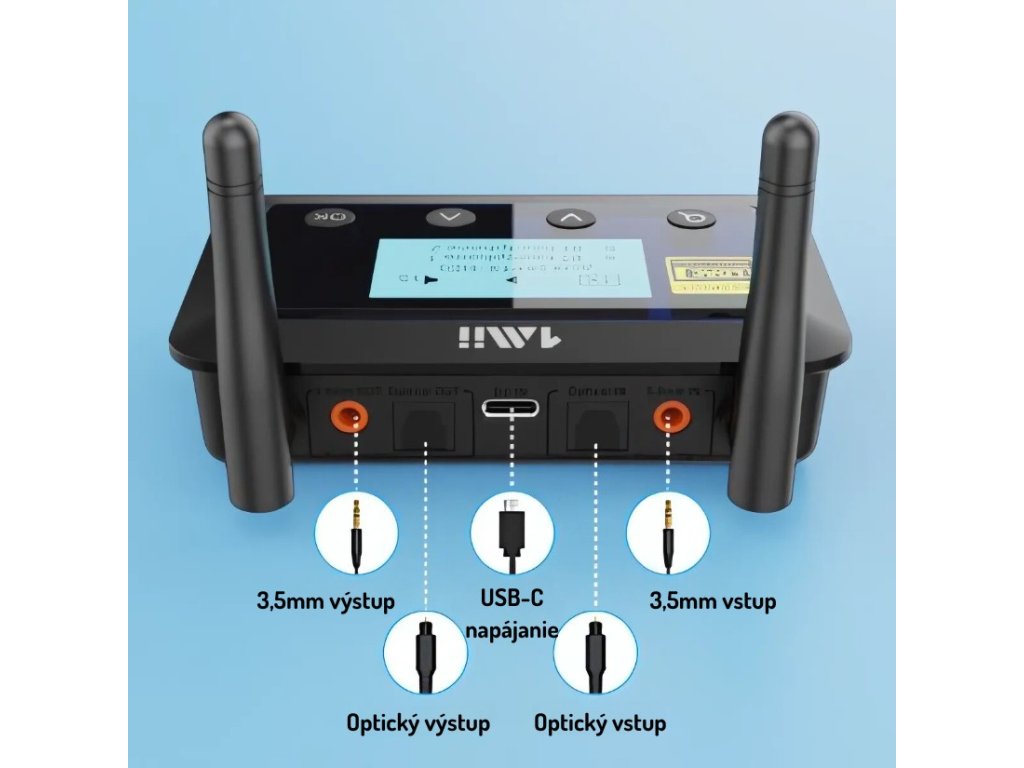 Vďaka pokročilému kodeku aptX HD zabezpečuje výbornú kvalitu zvuku vo vysokom rozlíšení bez zásadného oneskorenia. Intuitívny LCD displej poskytuje pohodlnú správu pripojených zariadení, čo je ideálne pre každého používateľa.