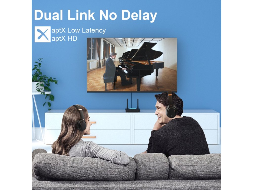 Bluetooth vysielač 1Mii B03+ umožňuje prenos zvuku z televízie, PC alebo iných zariadení do bezdrôtových slúchadiel alebo reproduktorov. Tento režim je špeciálne navrhnutý pre sledovanie filmov alebo hranie hier, kde je synchronizácia zvuku s obrazom absolútne kľúčová. Funkcia aptX Low Latency zabezpečuje minimálnu odozvu, čo ocenia najnáročnejší používatelia. Navyše, zariadenie podporuje simultánne pripojenie až dvoch Bluetooth zariadení.