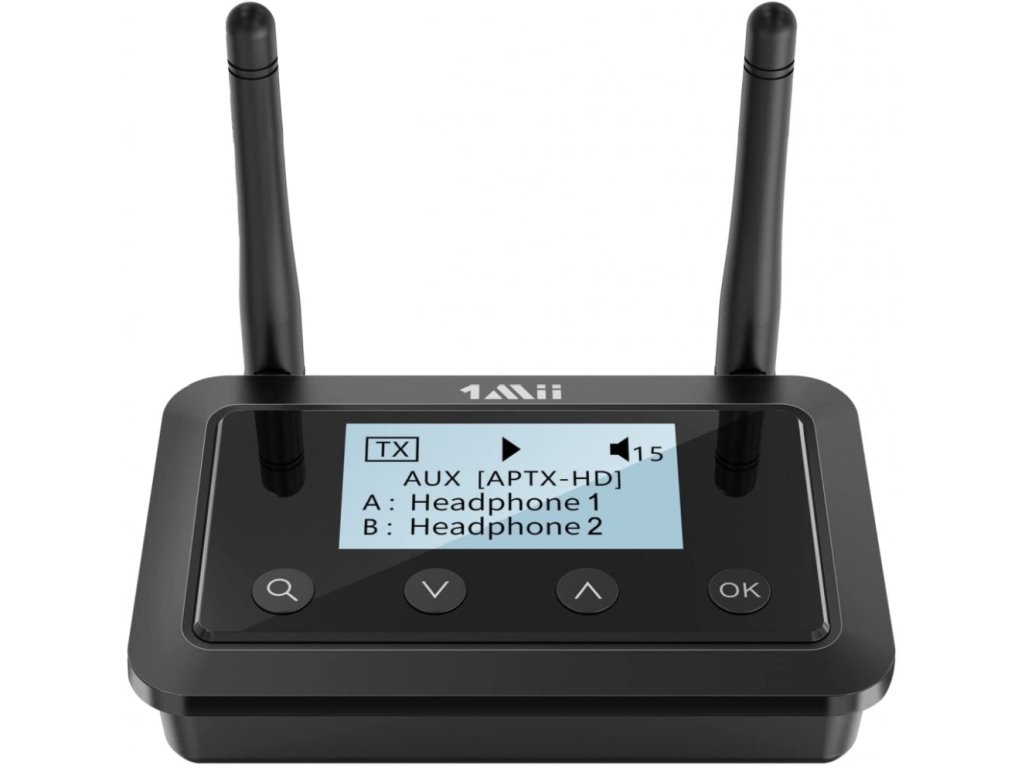 Bluetooth vysielač 1Mii B03+ s Bluetooth 5.3, aptX LL a aptX HD kodekmi, režimami TX/RX/Bypass, LCD displejom a dosahom až 70 m je ideálny pre bezdrôtový zvuk vo vysokom rozlíšení.