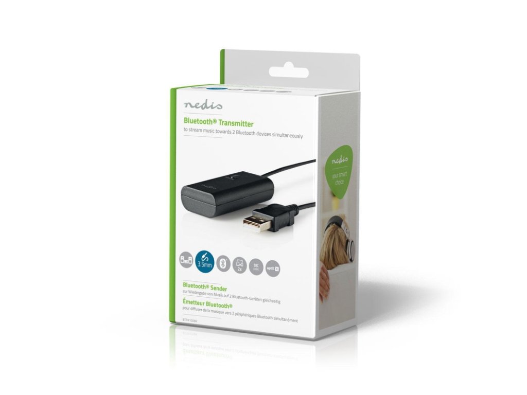 Audio transmitter umožňuje bezdrôtovo prenášať hudbu z audio alebo video systému do Bluetooth slúchadiel. Audio transmitter je vybavený čipovou sadou aptX, ktorá zaručuje vyššiu kvalitu zvuku. K zariadeniu je možné spárovať aj druhé slúchadlá.