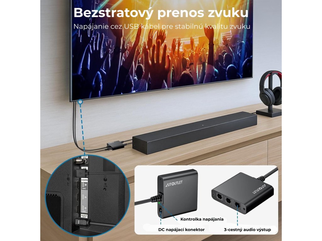 AUTOUTLET Toslink SPDIF optický rozbočovač 1x3 s USB napájením