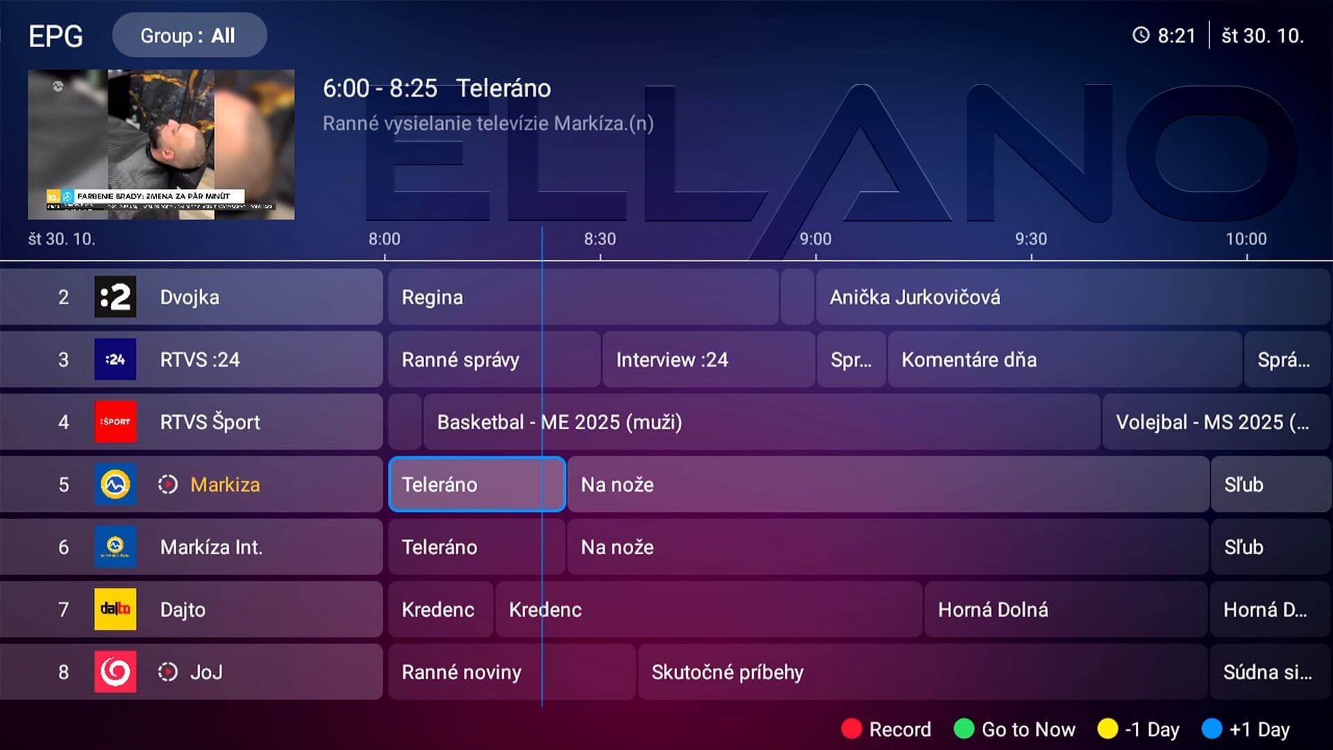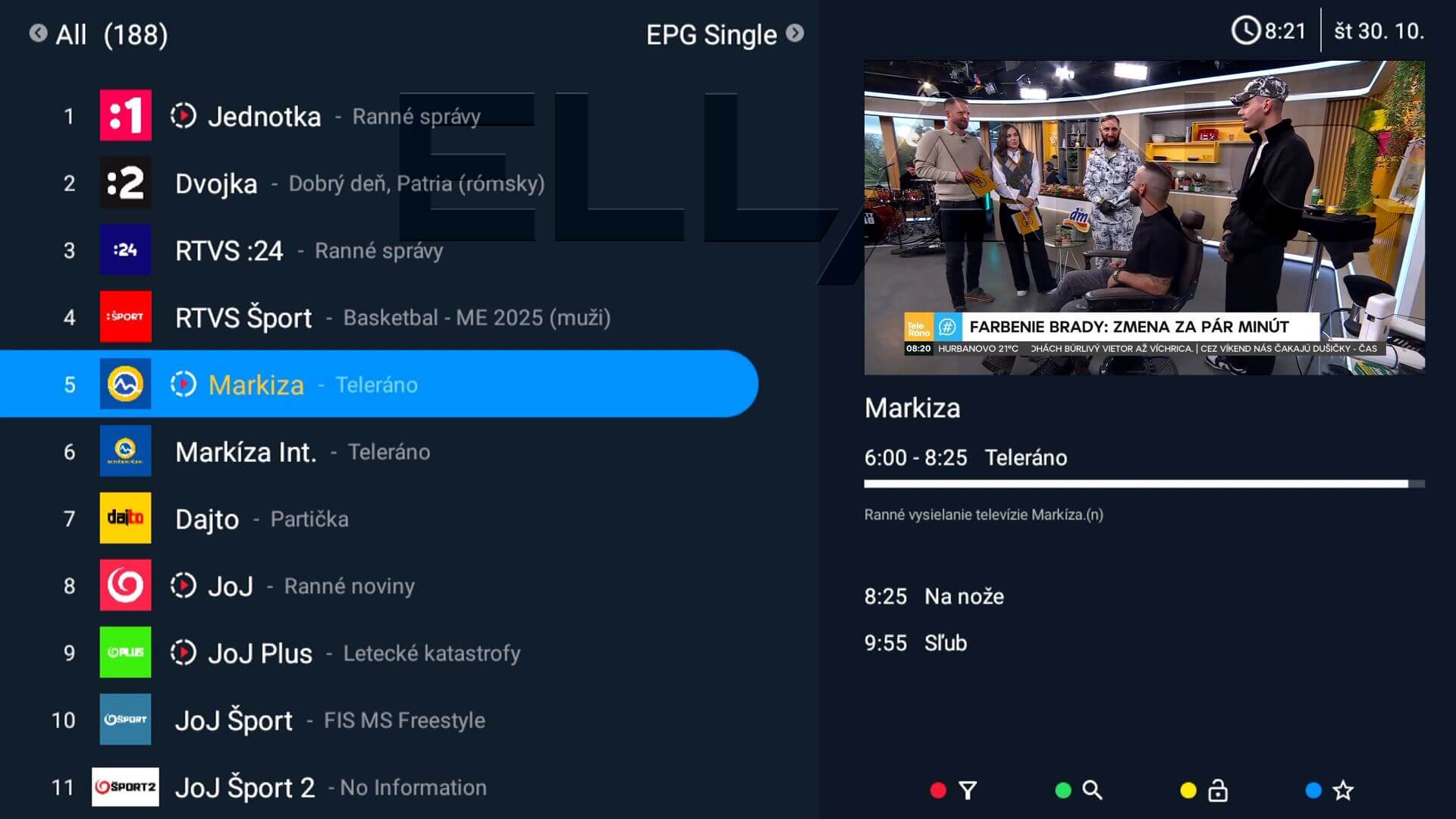 Rozhraní aplikace pro satelitní vysílání je aktuálně v angličtině. V prostředí Androidu lze změnit jazyk systému a klávesnice i pro češtinu a češtinu.
