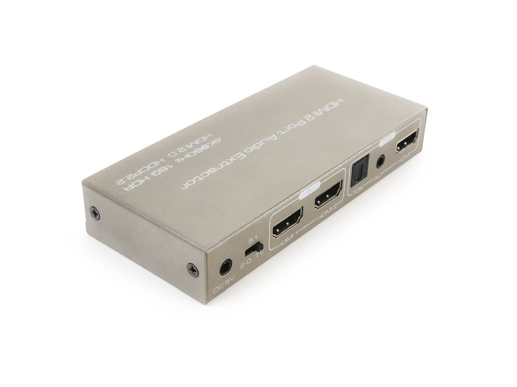 Kompaktní HDMI extraktor 4K pro 2 zdroje s podporou ARC, SPDIF, koaxiálem a analogovými výstupy. Stabilní obraz, čistý zvuk a snadné přepínání.