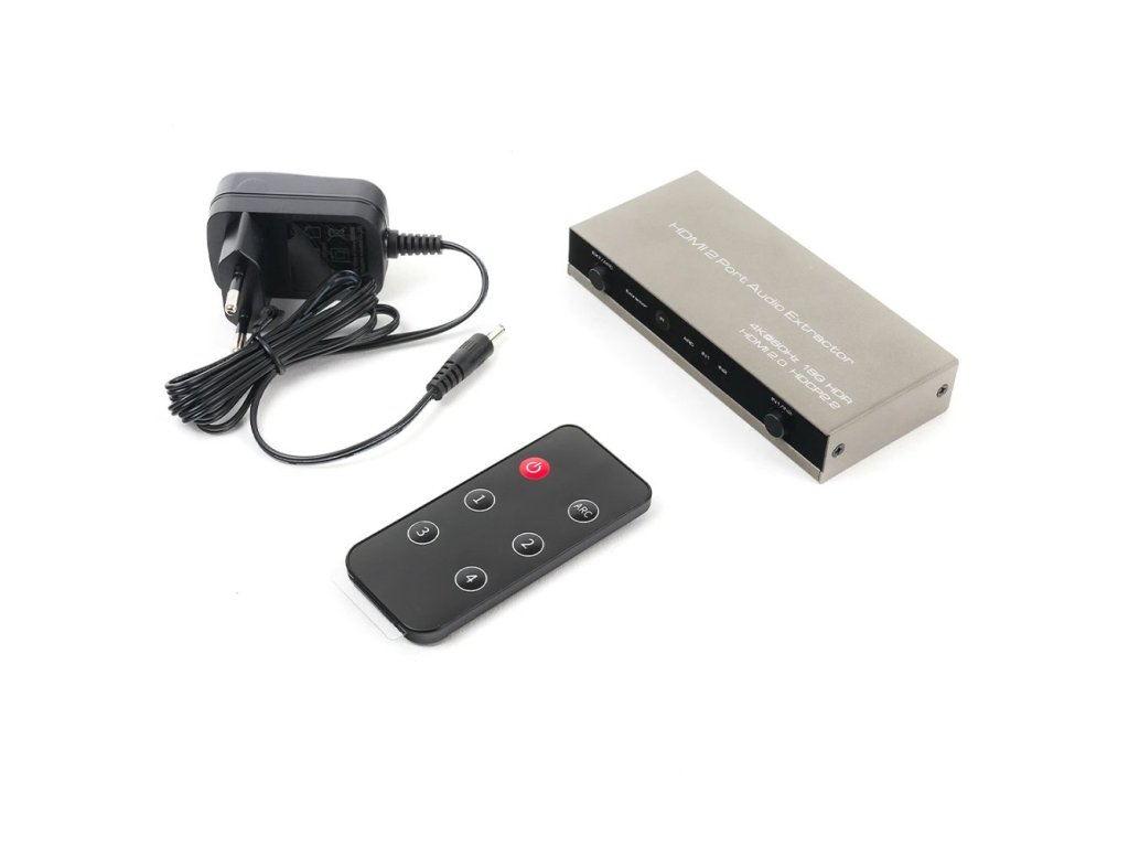 Kompaktní HDMI audio extraktor s podporou 4K HDR, ARC, Dolby Digital a DTS. Umožní převést zvuk z HDMI, Toslink nebo koaxiálu na analogové i digitální výstupy současně.