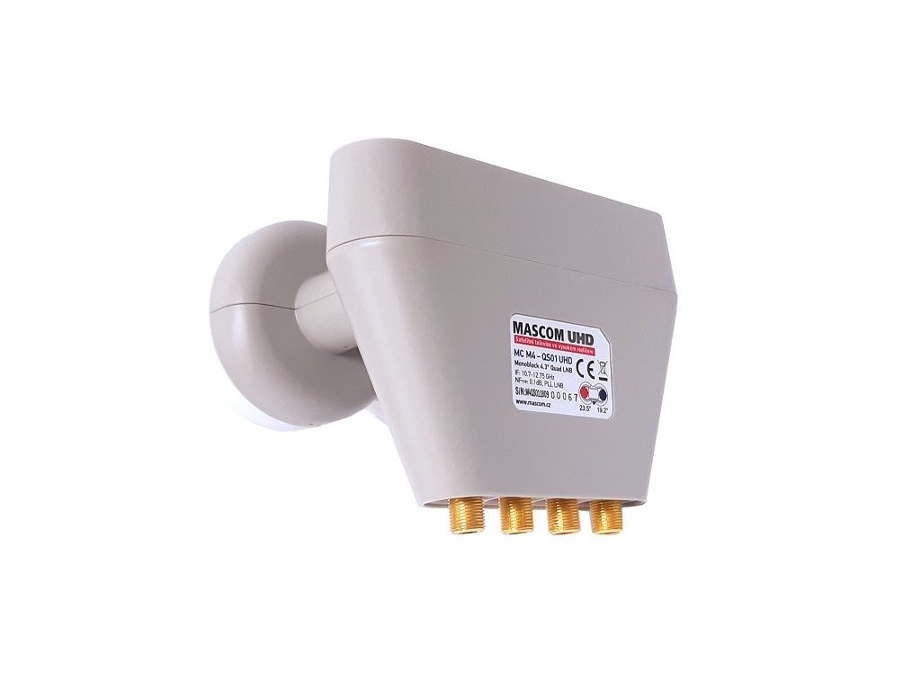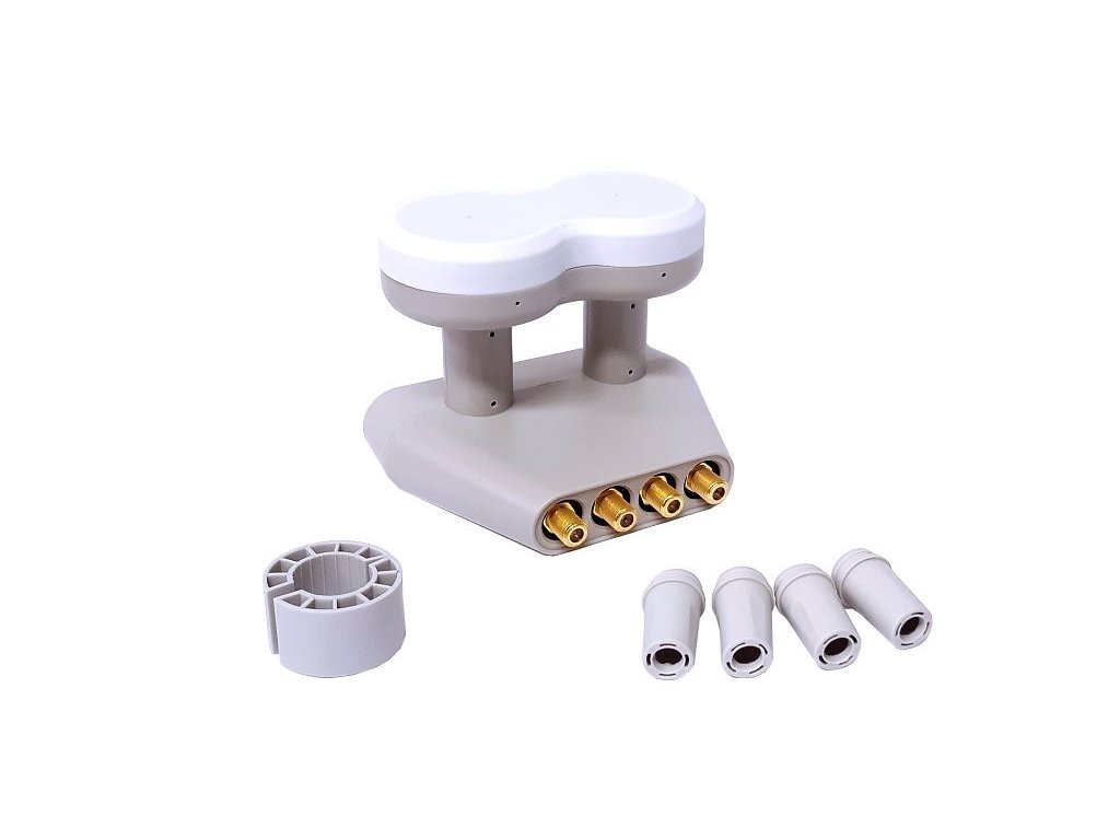 Konvertor se šumovým číslem 0,1 dB pro 4 přijímače, frekvenční rozsah 10,7 - 12,75 GHz.. Rozsah 4,3 stupňů, vhodný pouze pro družice Astra 19° a Astra 23,5°. Vestavěné přepínání konvertorů pomocí povelů DiSEqC. Doporučuje se maximálně pro paraboly do velikosti 100cm. Inovovaná verze s pozlacenými konektory.