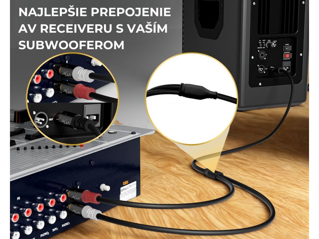 MyGatti Cinch Y splitter kabel pro subwoofer, 3 m, pozlacený, obousměrný