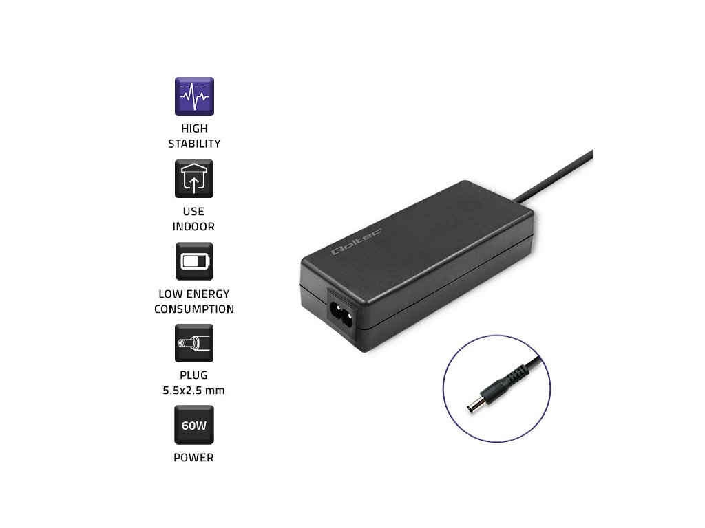 Napájecí adaptér Qoltec PREMIUM 60W-12V-5A – spolehlivý výkon pro vaše zařízení