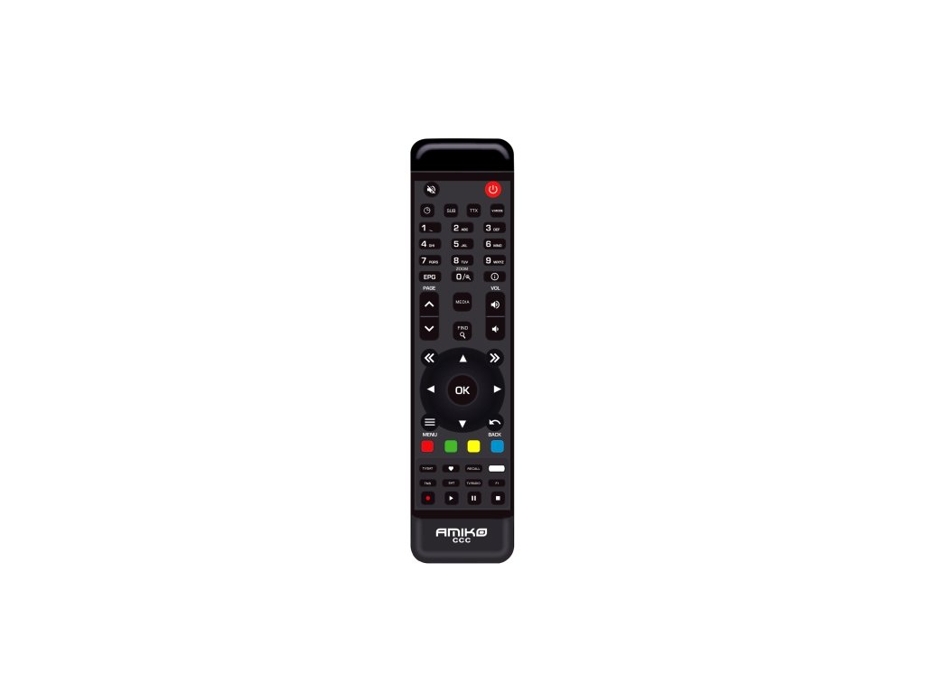 Dálkový ovladač Amiko CCC je ergonomicky navržen pro snadné a pohodlné ovládání přijímače. Tlačítka jsou dobře uspořádána, což umožňuje rychlý přístup k hlavním funkcím, jako je změna kanálů, nastavení hlasitosti, spuštění EPG nebo přehrávání nahrávek.