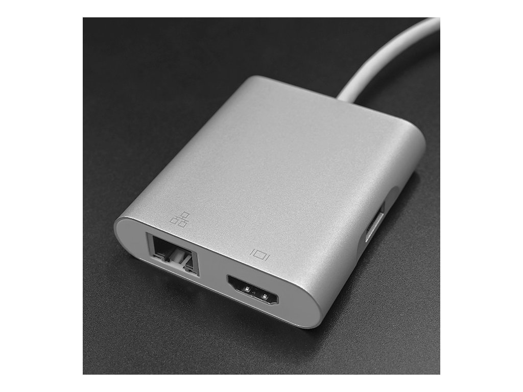 USB HUB s USB-C konektorem pro RJ45, HDMI, USB-C a 2x USB 3.0 Externí síťová karta HUB s USB-C konektorem a RJ45, HDMI, USB typu C a dvěma USB 3.0 porty, určená zejména pro notebooky Apple (série...