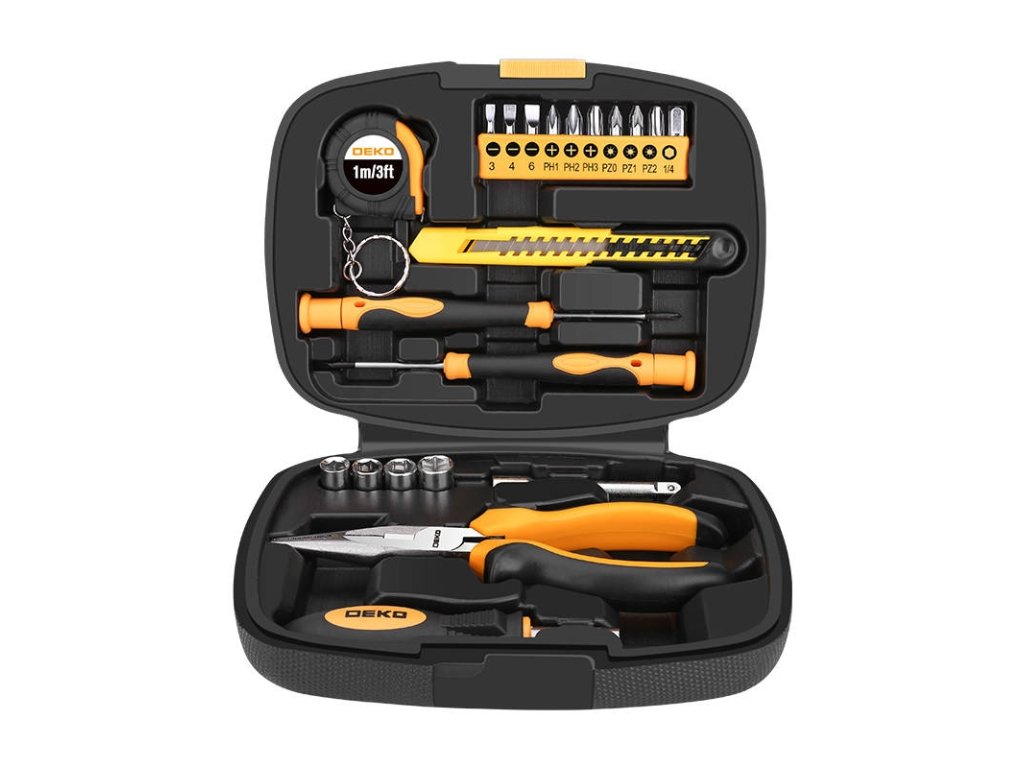 Potřebujete všestrannou sadu pro vaši domácí dílnu? Sada nářadí Deko Tools TZ21 bude fungovat perfektně! Praktická a funkční sada nářadí vám usnadní práci. Obsahuje až 21 kusů nářadí. Mezi nimi nůž se zlomenou čepelí, dlouhé kleště, měřicí páska nebo 2 přesné šroubováky atd. Předměty jsou vyrobeny z vysoce kvalitních materiálů a poskytují pohodlí při používání. Všechny prvky sady jsou umístěny v praktickém kufříku, díky kterému bude jejich skladování jednoduché a pohodlné.