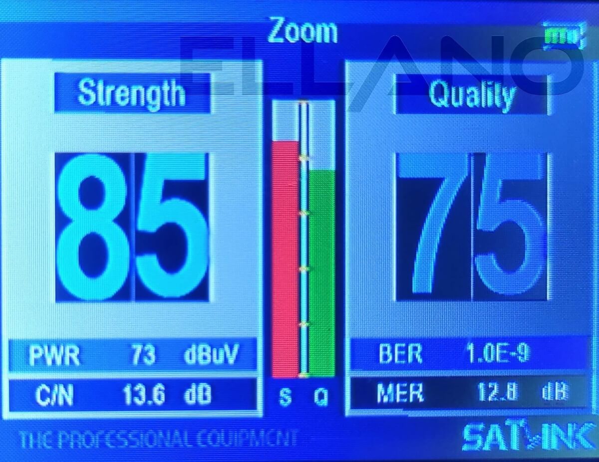Satlink ST-5032 nabízí přehledný 2,4palcový TFT LCD displej s rozlišením 320 × 240 pixelů, který zobrazuje detailní informace o síle a kvalitě signálu. Na displeji najdete zobrazené hodnoty jako PWR (síla signálu), C/N (Carrier-to-Noise ratio), BER (Bit Error Rate) a MER (Modulation Error Ratio). Měřič nepodporuje kodek HEVC/H.265 , což znamená, že živé vysílání v tomto formátu sice nezobrazí na displeji, ale frekvence takových stanic dokáže bez problémů a přesně změřit.