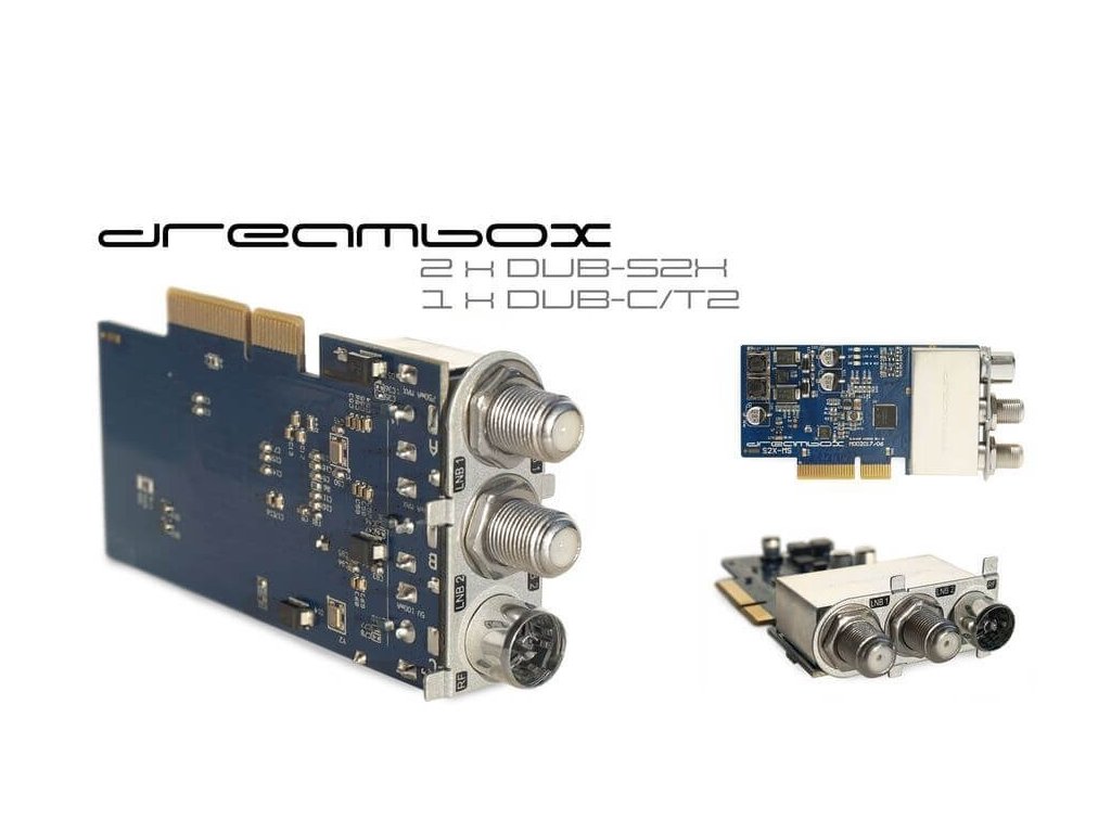 Tuner plug & play má dva vstupy DVB-S2 a jeden vstup DVB-C/T2 a jednoduše se vkládá do určeného slotu. Při dalším spuštění Dreamboxu automaticky rozpozná nový tuner a nakonfiguruje jej. Další nastavení pak můžete provést v nabídce Dreambox.