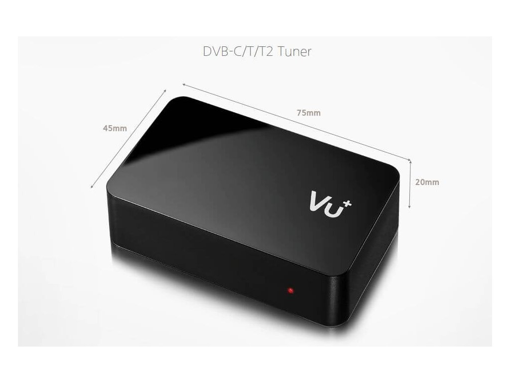 USB externí hybridní tuner pro 4K přijímače VU+ v normě DVB-T/T2/C pro pozemní a kabelovou televizi.