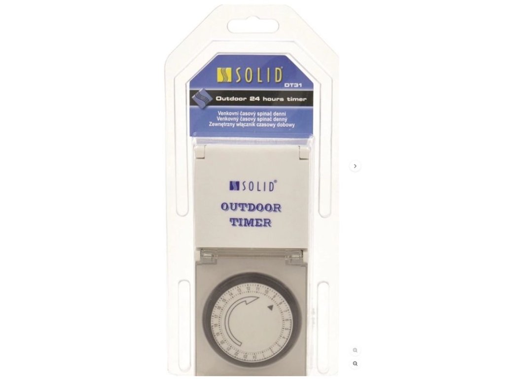 Rozpětí 24hod., min. časový úsek 15min., mechanický, dětská pojistka, - 230V/16A, 50Hz, kryt zásuvky + gumové těsnění, vodě odolná, ochrana IP44,
