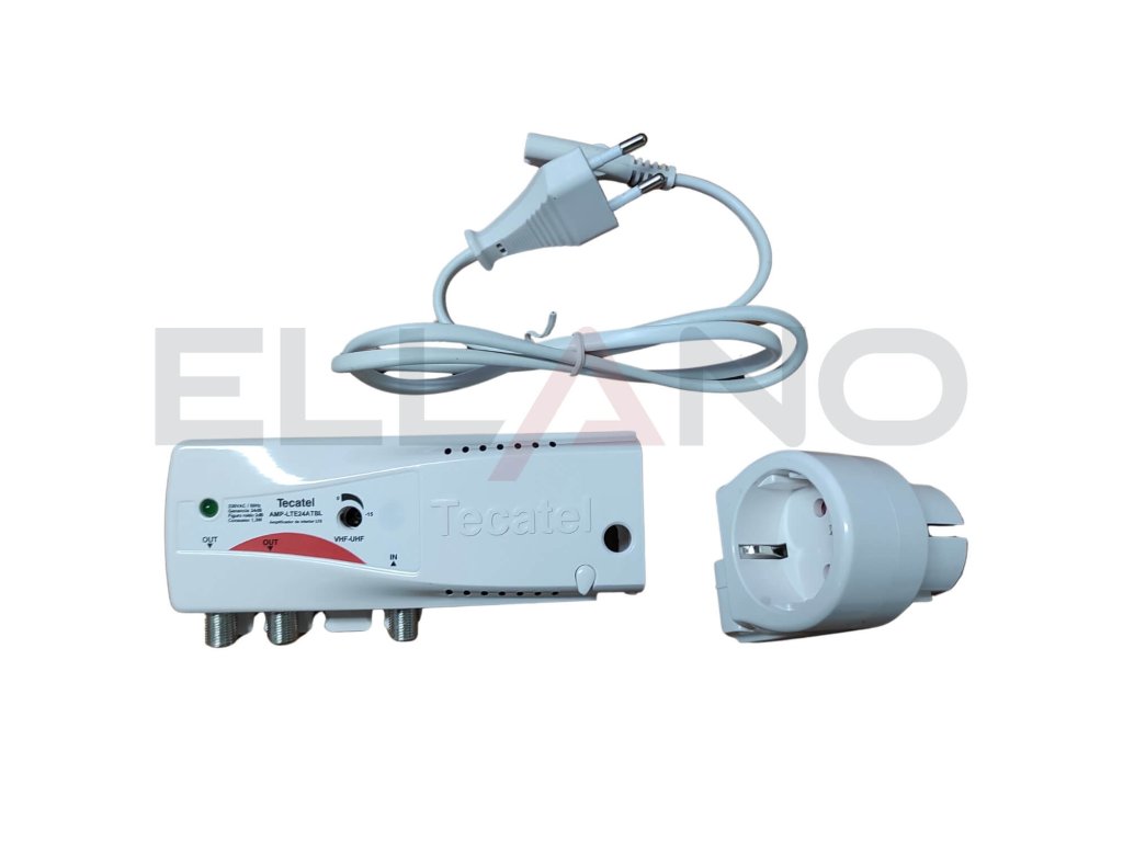 Zesilovač signálu TECATEL AMP-LTE24ATB je vnitřní širokopásmový zesilovač určený ke zlepšení příjmu pozemního televizního vysílání DVB-T/T2, analogového FM rádia i digitálního DAB rádia. Díky zesílení až 24 dB dokáže stabilizovat a vyčistit signál v oblastech se slabším pokrytím nebo při rozvodech do více TV přijímačů. Zařízení je vybaveno LTE filtrem , který eliminuje rušení ze 4G/5G mobilních sítí, a má kompaktní rozměry pro snadnou instalaci přímo do zásuvky. Jedná se o moderní řešení s nízkou spotřebou a kvalitní ochranou proti šumu.
