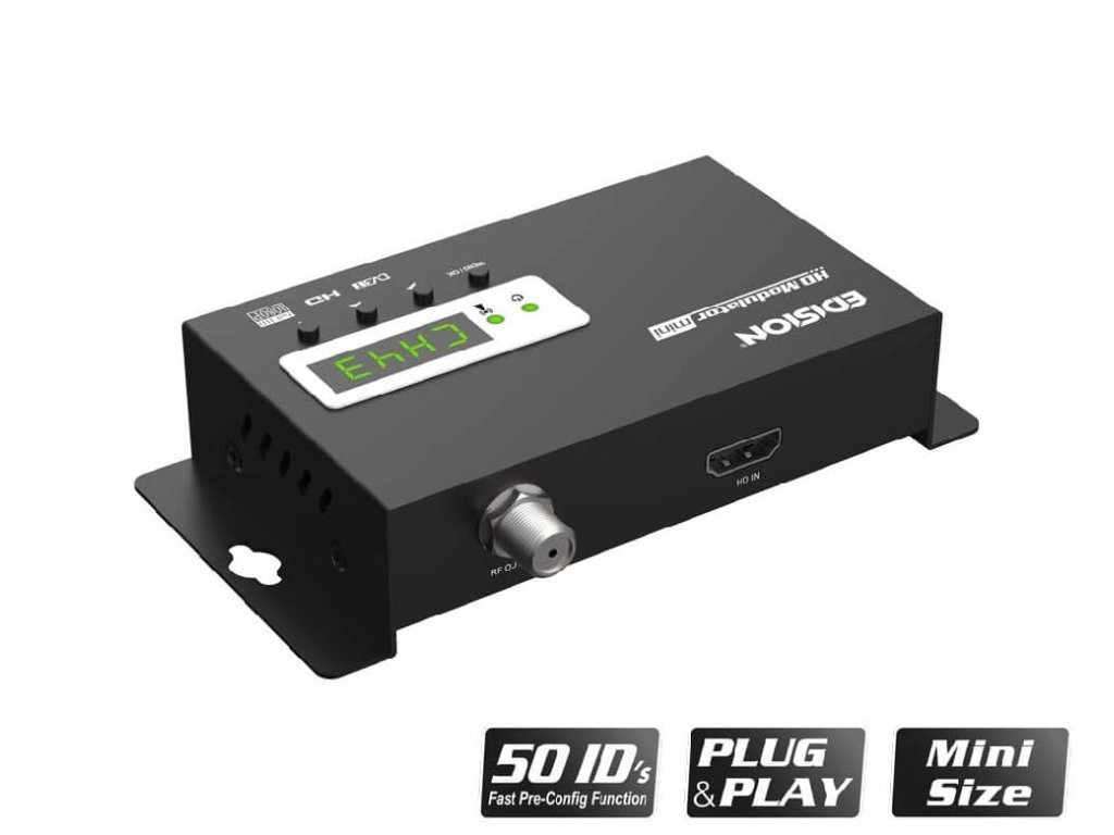 Modulátor Edision HDMI MINI je průlomový jednokanálový modulátor, který si hravě poradí s převodem HDMI signálu naDVB-T/MPEG4 formát. Bez ohledu na zdroj - ať už je to pozemní nebo satelitní dekodér, kamera, DVD, DVR a další, tento přístroj dokáže převést jakýkoli HDMI signál až do úžasného FULL HD rozlišení 1080p.