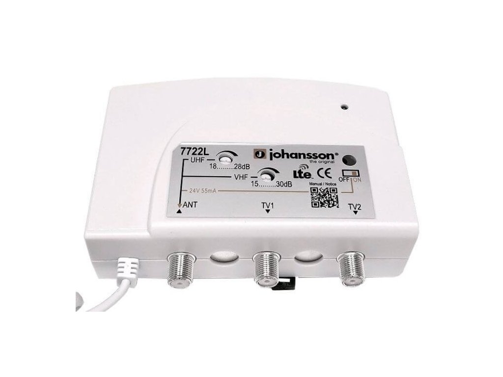Širokopásmový zosilňovač so zabudovaným zdrojom s 1 vstupom a 2 výstupy. Je vhodný pre použitie v rodinných domoch aj pre viac bytových jednotiek. Zosilnenie 15 - 30 dB (VHF) / 18 - 28 dB (UHF), max. Výstupná úroveň 2x 107 dB.