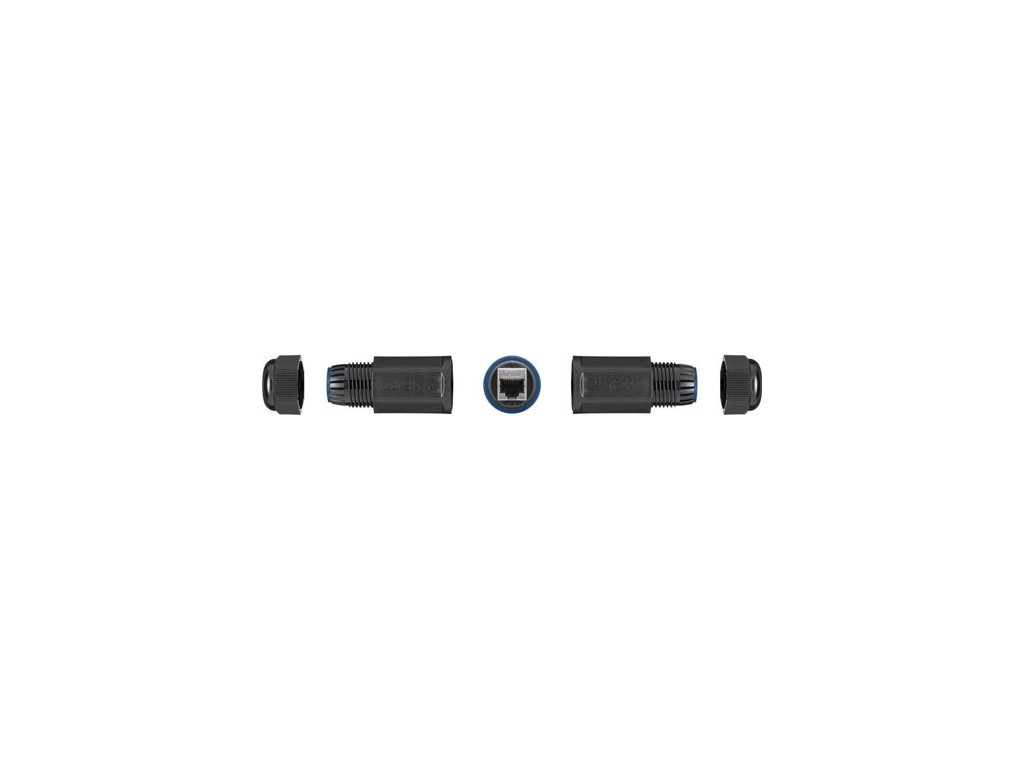 Vodeodolná spojka RJ45 pre sieťové káble CAT 5/6/7, s krytím IP68. Použitelná aj ako zemná spojka.