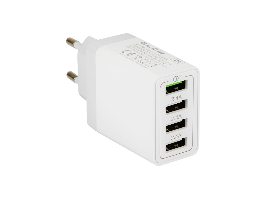 Nástenná nabíjačka so štyrmi USB portami. Nabíjačka je určená pre zariadenia, ktoré je možné napájať/nabíjať z USB portu. Funkcia SMART automaticky upraví bezpečné napätie a nastaví maximálnu rýchlosť nabíjania.