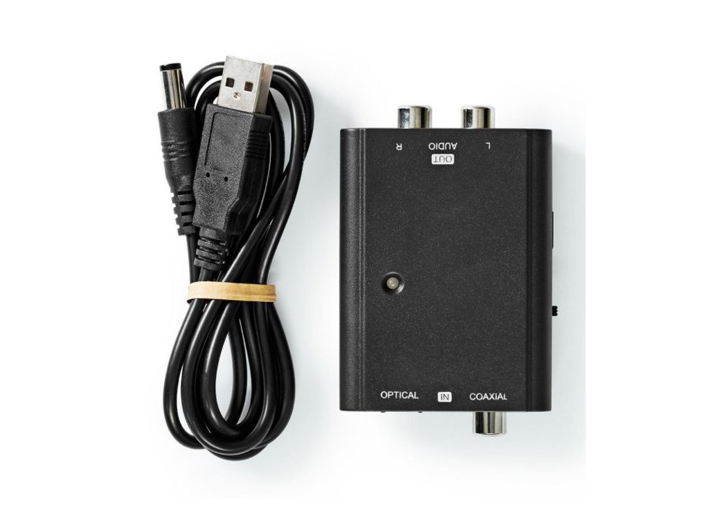 Prevodník NEDIS ACON2509BK je praktický digitálno analógový audio prevodník, určený na prepojenie moderných zariadení s digitálnym výstupom so staršími zosilňovačmi alebo reproduktormi s analógovým CINCH vstupom. Podporuje optický S PDIF aj koaxiálny digitálny vstup a prevádza ich na stereo analógový signál 2x CINCH. Je ideálny pre televízory, set top boxy, Blu ray prehrávače alebo herné konzoly bez analógového audio výstupu.