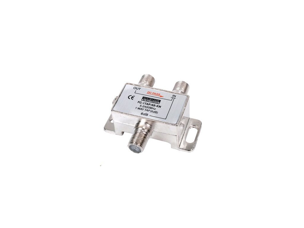Odbočovač SAT / TV signálu, 1 smer, 5 - 2400MHz, odbočovací útlm 6 dB. Využitie pre inštalácie do STA a káblových rozvodov.