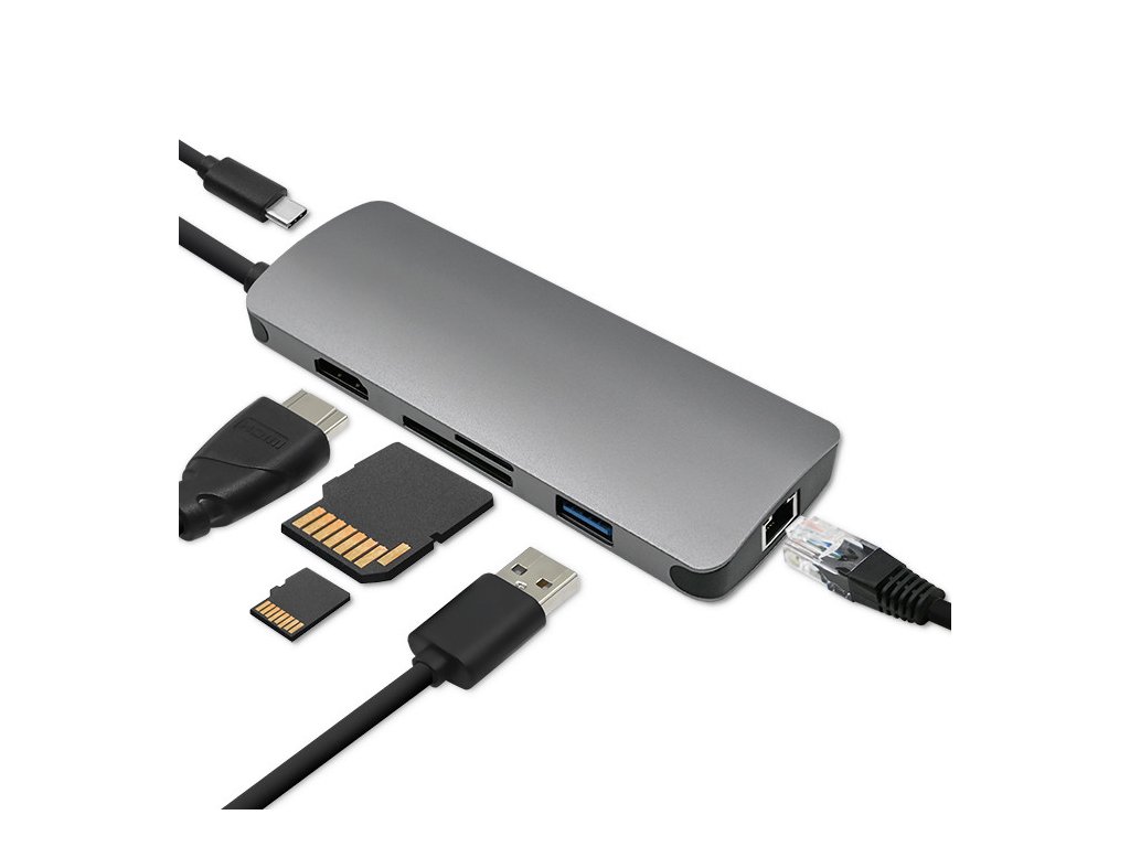 Typ: USB 3.1 Type C samec / HDMI samica + USB 3.0 samica + RJ45 samica + SD + micro SD + USB Type C PD