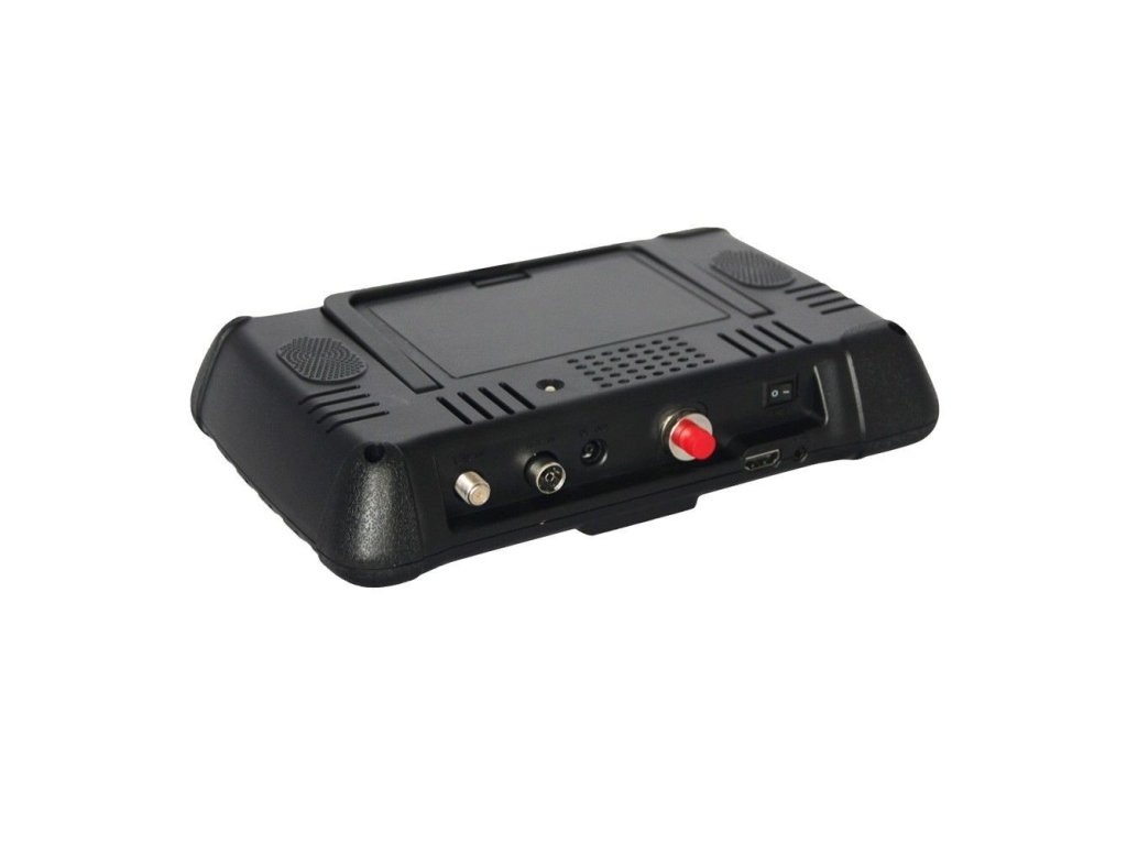 Je vybaven 2x HDMI - jeden výstupní pro zobrazení signálu např. na TV a jeden vstupní pro připojení např. kamerového systému, nebo odzkoušení přijímače. Ve výbavě najdete i analogový vstup a výstup přes jack 3,5 mm. Nechybí ani 12V výstup pro napájení kamer a je zde také možnost optického měření síly výběrem vlnové délky a PWR jednotky. Na zadním panelu jsou osazeny 2 reproduktory pro zvukovou signalizaci.