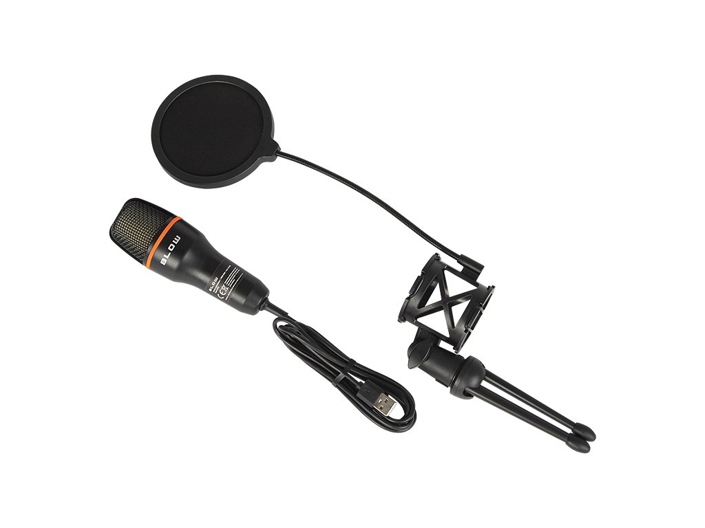 Kvalitný herný mikrofón BLOW s plnou výbavou, ktorý umožňuje okamžité použitie. Vďaka pripojeniu cez USB rozhranie je mikrofón ideálny pre počítače alebo notebooky pre nahrávanie rôznych druhov zvukov, streamovanie a iné účely.