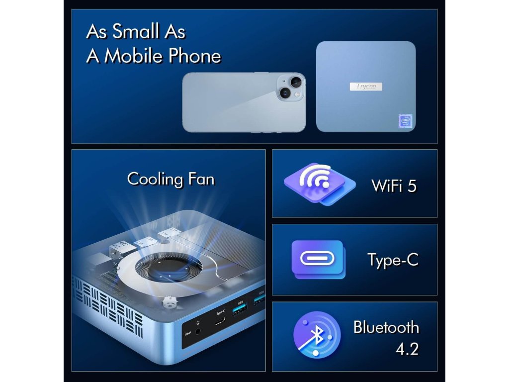Trycoo WI-6 Mini PC Intel N95 | 16GB RAM, 512GB SSD, Windows 11 Pro, 4K