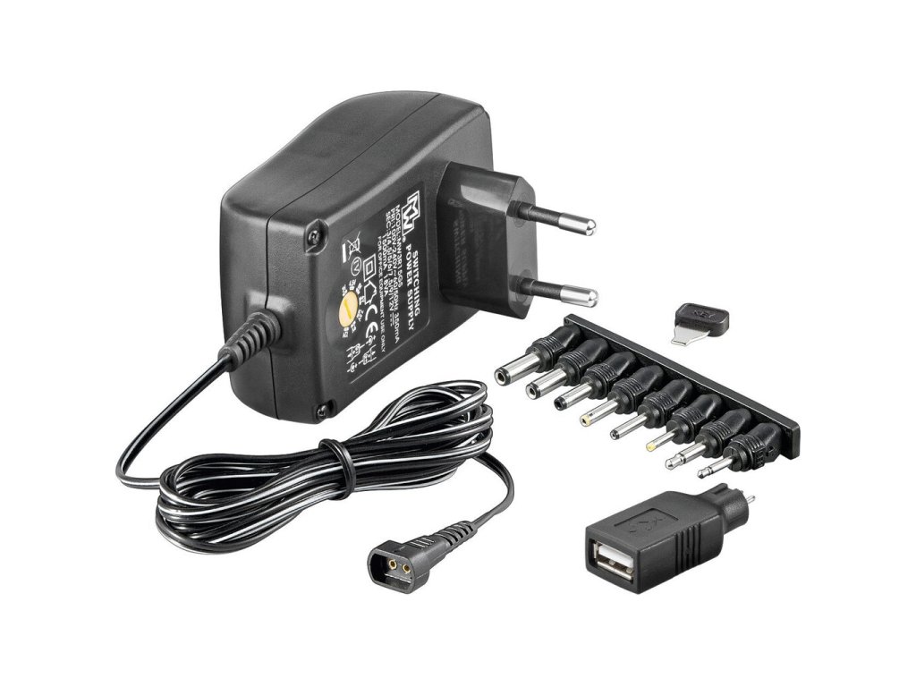 Univerzálny napájací zdroj 3-12 V vrátane 1x USB + 8 DC adaptérov - max. 18 W a 1,5 A