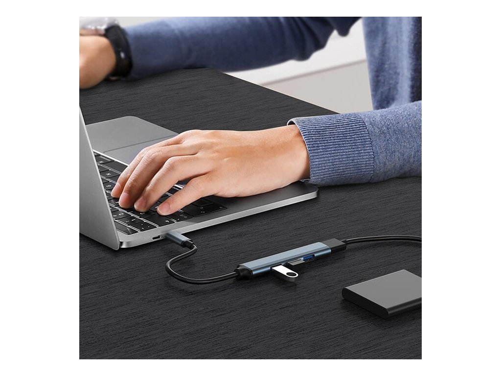 Rozbočovač je vhodný na pripojenie myši, klávesnice, USB kľúča, tlačiarne, gamepadu či externého disku. Umožňuje prehľadné usporiadanie pracovného priestoru a plynulú spoluprácu medzi zariadeniami. Treba počítať s tým, že všetky porty zdieľajú jeden USB 3.0 vstup, čo je prirodzené obmedzenie tohto typu hubu.