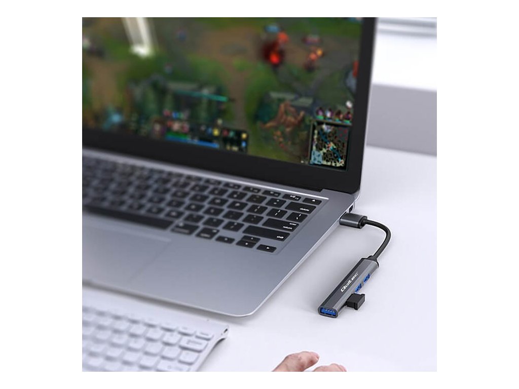 Adaptér rozbočovača Qoltec USB 3.0 4v1 je kompaktný USB hub určený pre používateľov notebookov, tabletov a počítačov, ktorým chýbajú voľné USB porty. Poskytuje 4x USB 3.0 port, vďaka čomu môžete súčasne pripojiť viacero zariadení bez neustáleho odpájania. Využitie nájde doma, v kancelárii aj na cestách, kde je pracovný priestor obmedzený. Pevné hliníkové puzdro zvyšuje odolnosť a zároveň pomáha s odvádzaním tepla. Hub funguje bez inštalácie ovládačov vďaka technológii Plug and Play.
