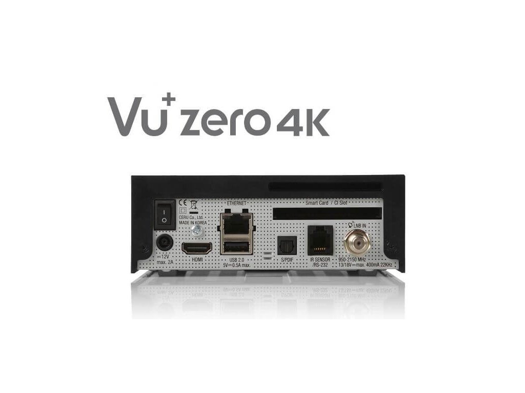 Kórejský výrobca populárnych prístrojov VU+ dopĺňa svoju modelovú radu o další 4K model, pod názvom VU+ Zero 4K. Ide o digitálny satelitný prijímač pre príjem TV a rozhlasové programy v rozlíšení 4K UHD a Full HD. Tentokrát ide o nástupcu VU+ Zero, čiže rozmerovo najmenší model. Má takisto, ako jeho predchodca možnosť skrytia za TV, pomocou priloženého externého IR čidla. Zariadenie VU + Zero 4K je cenovo dostupný vstupný prijímač do televízora s ultra vysokým rozlíšením (4K), s podporou HDR10/HLG, ktorý ponúka vyšší kontrast obrazu. Zariadenie VU + Zero 4K ponúka po prvý krát tuner S2X a je preto pripravený na budúcnosť vysielania aj v tejto norme.