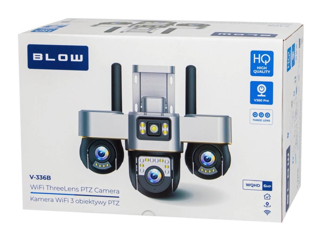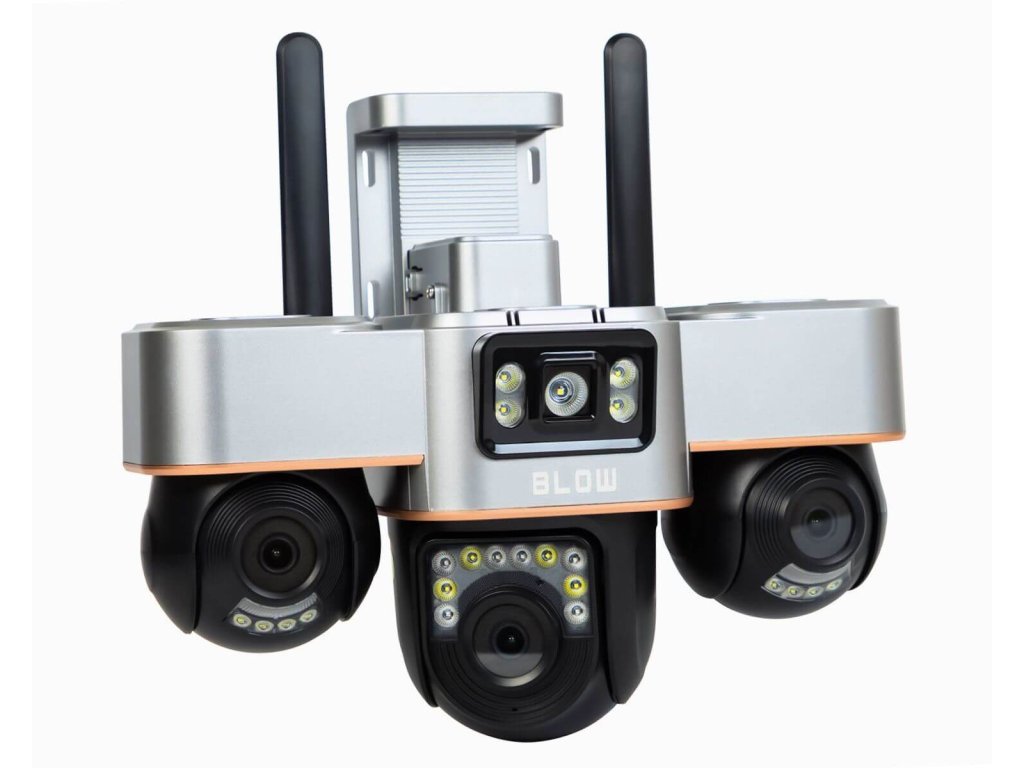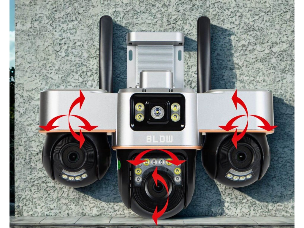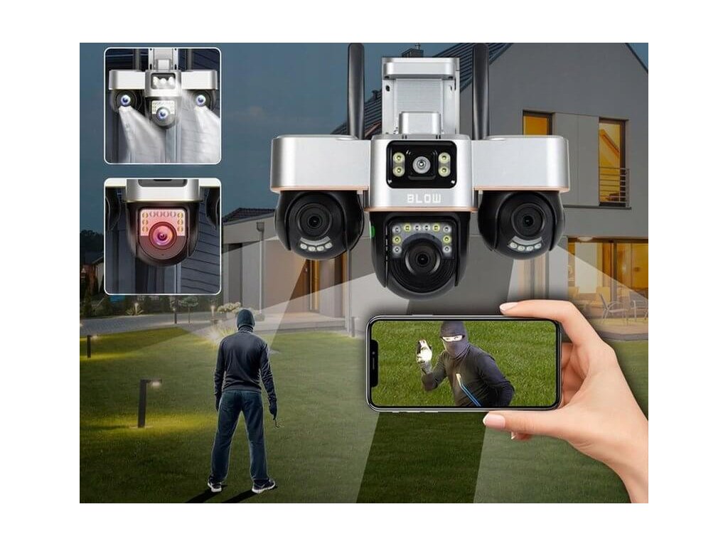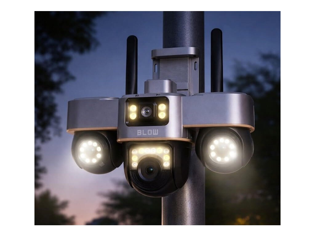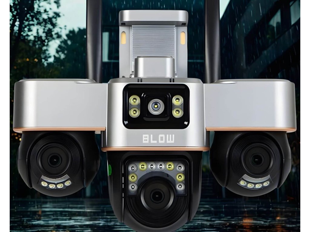 WiFi IP kamera Blow V-336B je moderná vonkajšia bezpečnostná kamera, ktorá v jednom zariadení kombinuje možnosti až troch samostatných kamier. Vďaka trom nezávislým objektívom s celkovým rozlíšením 6 MP dokáže monitorovať viacero zón súčasne bez slepých miest. Kamera je plne otočná, ovládaná na diaľku cez mobilnú aplikáciu a vhodná na ochranu domu, dvora, garáže či firemných priestorov. Samozrejmosťou je nočné videnie, detekcia pohybu s alarmom a záznam na pamäťovú kartu. Ide o riešenie pre používateľov, ktorí chcú maximum kontroly bez zložitej inštalácie.