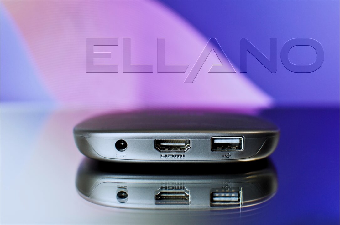 Na zadnej strane sa nachádza základná konektorová výbava: 1× HDMI 2.1b port, 1× USB 2.0 port (s podporou USB hubu) a napájací vstup. Zariadenie neobsahuje zbytočné porty navyše, čím si zachováva jednoduchú a čistú konštrukciu. Vďaka podpore Wi-Fi 6 a Bluetooth 5.2 nie je potrebné viesť žiadne ďalšie káble - všetko funguje bezdrôtovo a spoľahlivo.