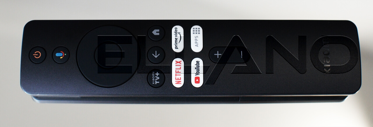 Diaľkový ovládač je ergonomický a veľmi pohodlný na používanie. Ovládač komunikuje cez Bluetooth a obsahuje vstavaný mikrofón, ktorý umožňuje hlasové ovládanie cez Google Assistant. K dispozícii sú aj tlačidlá pre okamžitý prístup k obľúbeným aplikáciám ako Netflix, Prime Video, YouTube a ďalším.